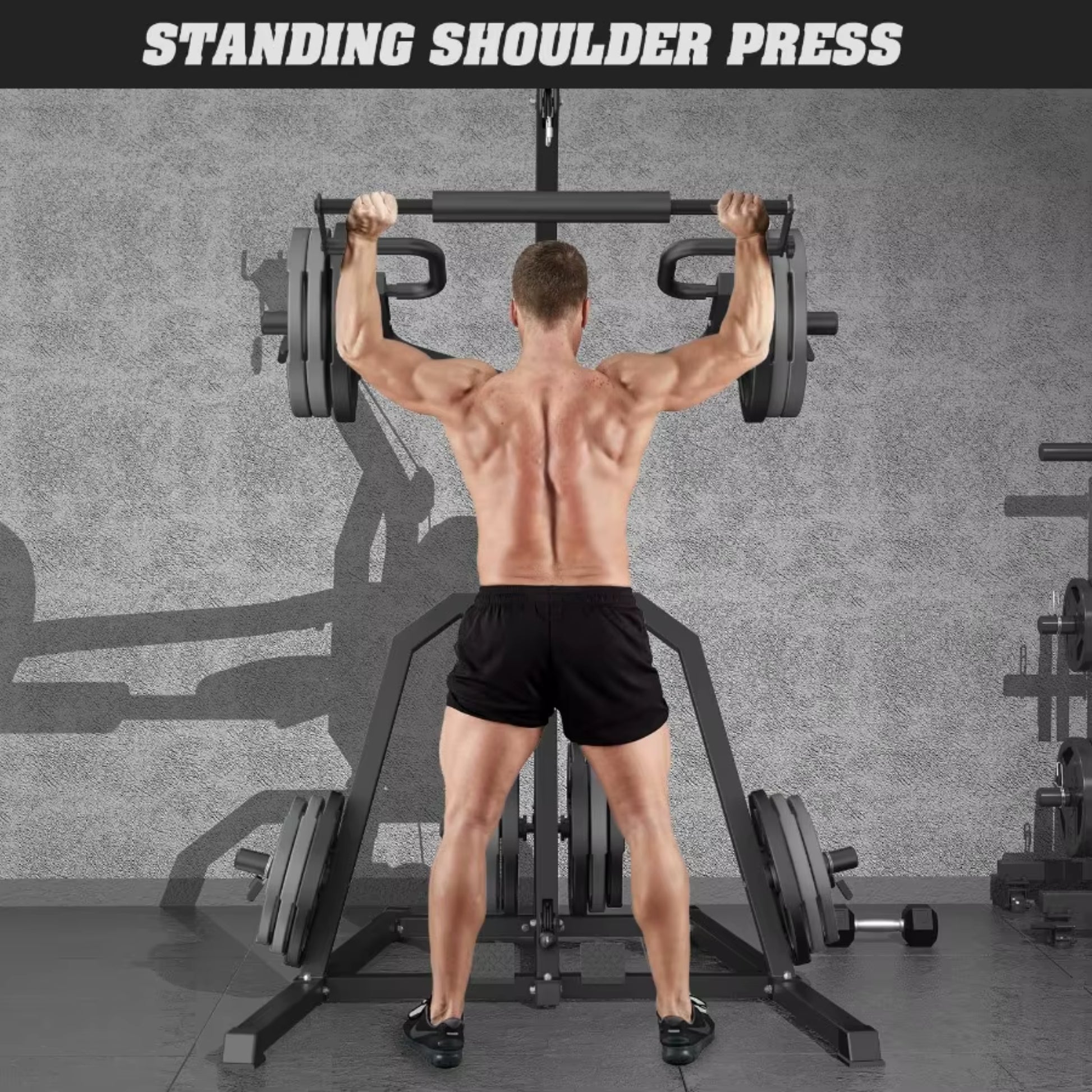 Independent Leverage Arms: Two lever arms can be used independently for bench press, bicep curls, arm rowing, dip stand, or locked together with connecting bar for squats, deadlifts, shrugs, and calf raises